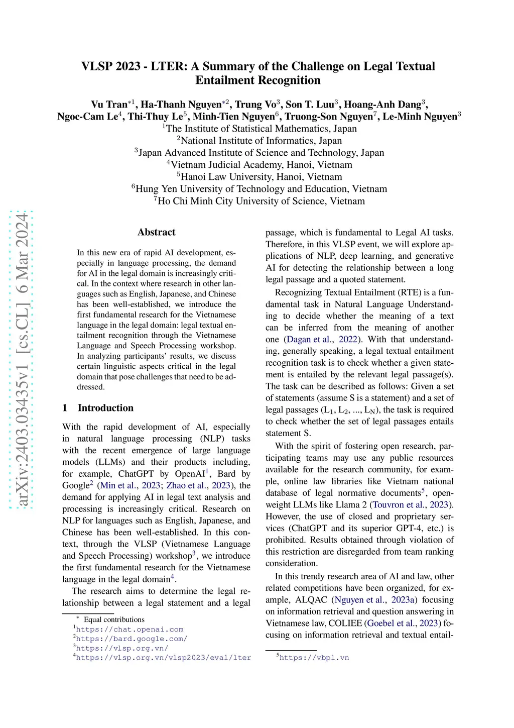 VLSP 2023 -- LTER: A Summary of the Challenge on Legal Textual