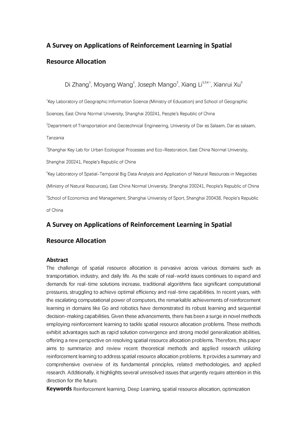 A Survey on Applications of Reinforcement Learning in Spatial Resource