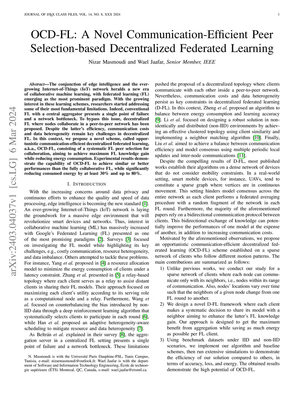OCD-FL: A Novel Communication-Efficient Peer Selection-based