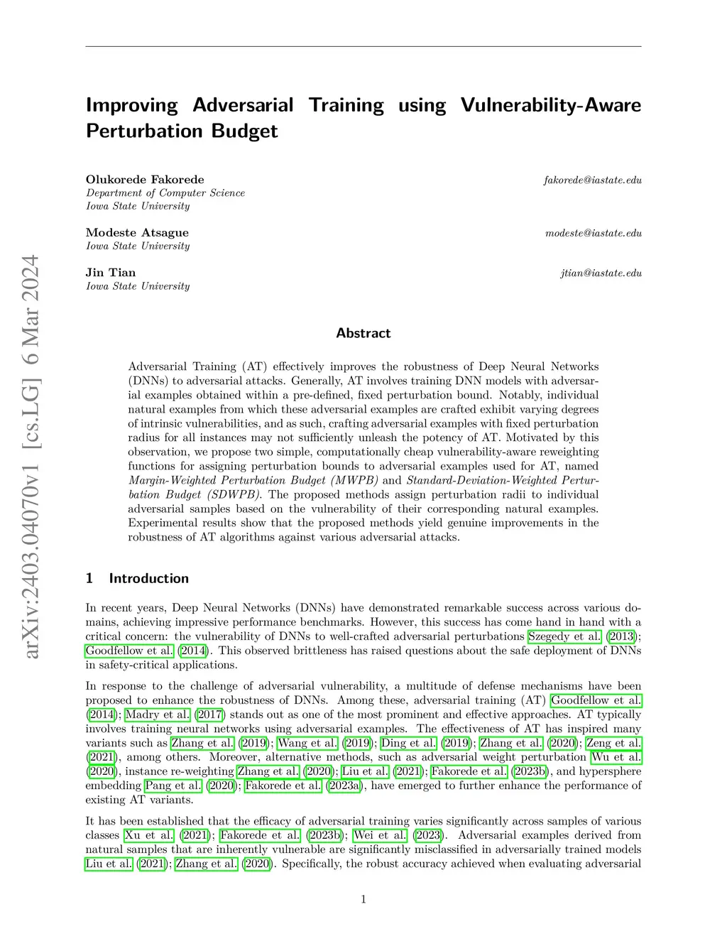 Improving Adversarial Training using Vulnerability-Aware Perturbation