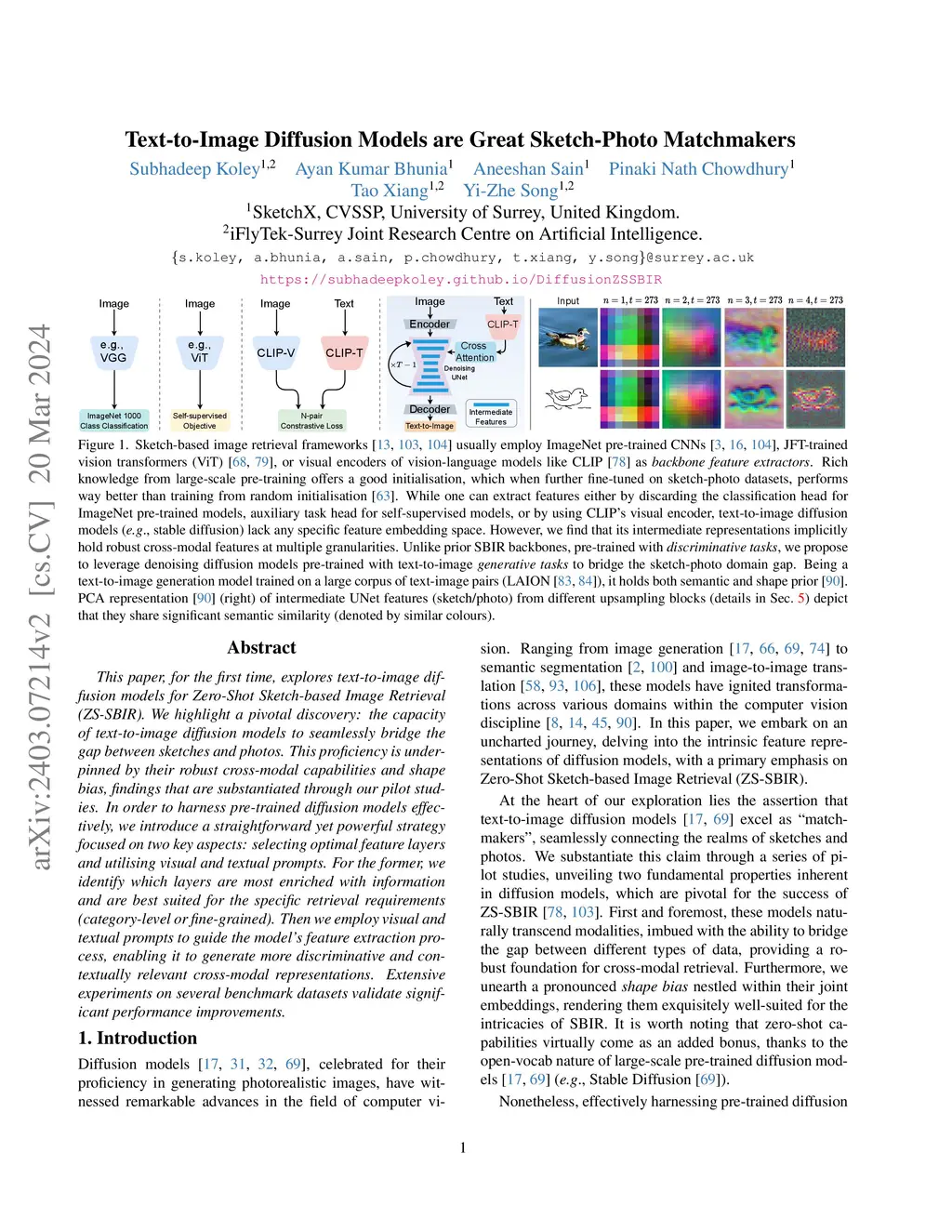 This paper, for the first time, explores text-to-image diffusion models for Zero-Shot Sketch-based Image Retrieval (ZS-SBIR). We highlight a pivotal discovery: the capacity of text-to-image diffusion models to seamlessly bridge the gap between sketches and photos. This proficiency is underpinned by their robust cross-modal capabilities and shape bias, findings that are substantiated through our pilot studies. In order to harness pre-trained diffusion models effectively, we introduce a straightforward yet powerful strategy focused on two key aspects: selecting optimal feature layers and utilising visual and textual prompts. For the former, we identify which layers are most enriched with information and are best suited for the specific retrieval requirements (category-level or fine-grained). Then we employ visual and textual prompts to guide the model's feature extraction process, enabling it to generate more discriminative and contextually relevant cross-modal representations. Extensive experiments on several benchmark datasets validate significant performance improvements.