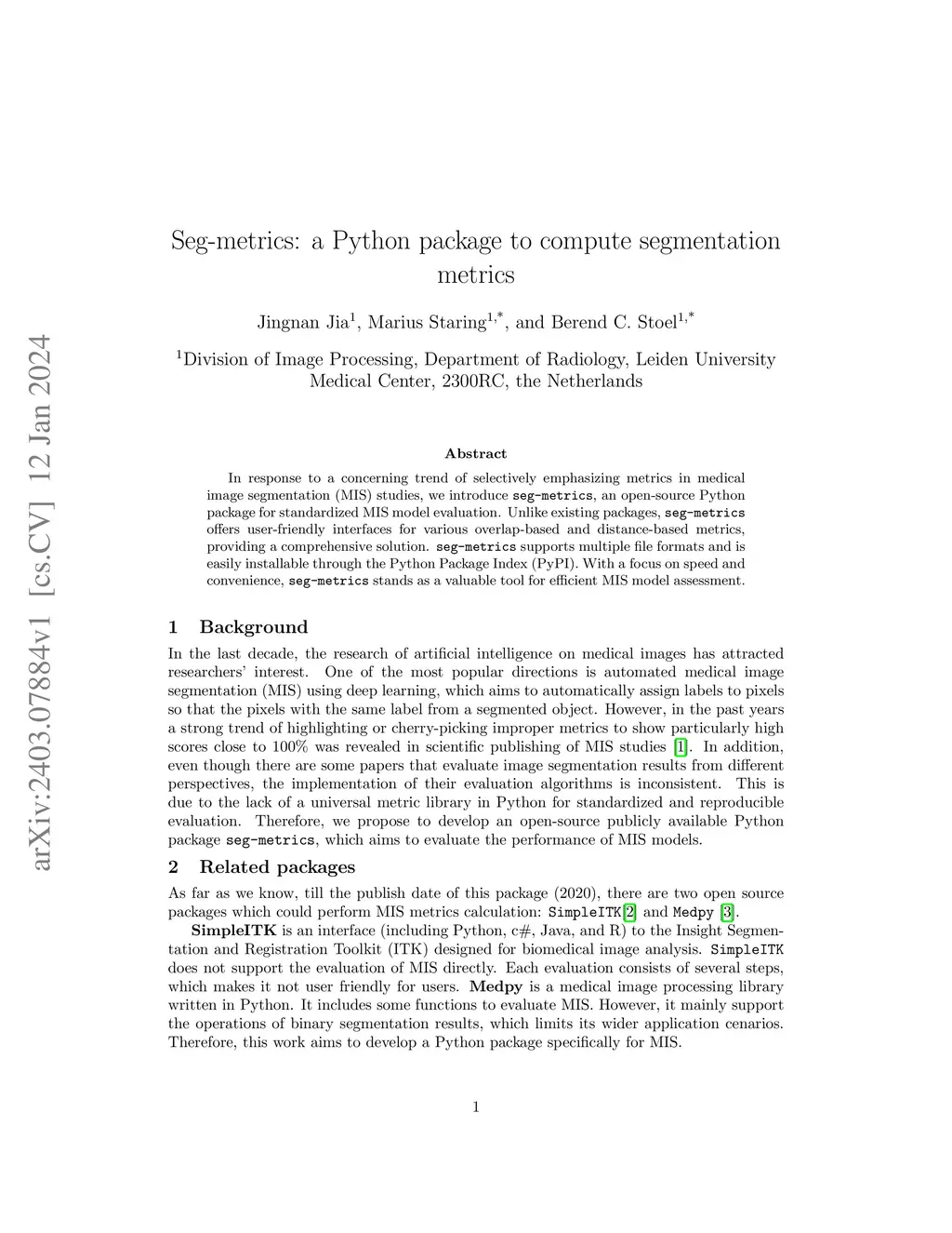 Seg-metrics: a Python package to compute segmentation metrics
