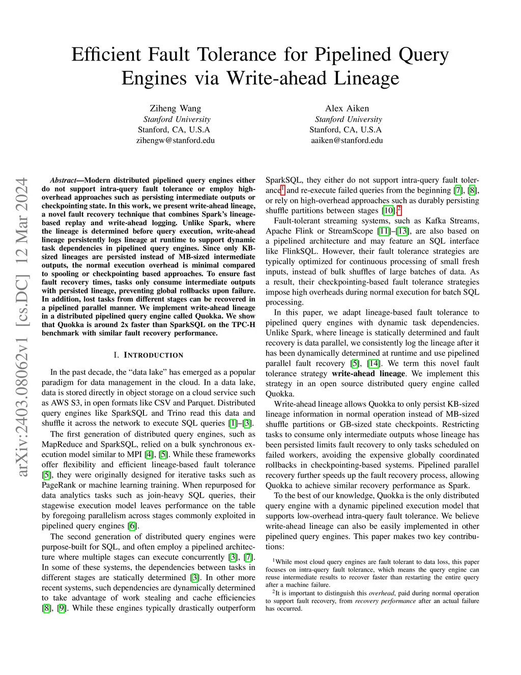 Efficient Fault Tolerance for Pipelined Query Engines via Write-ahead
