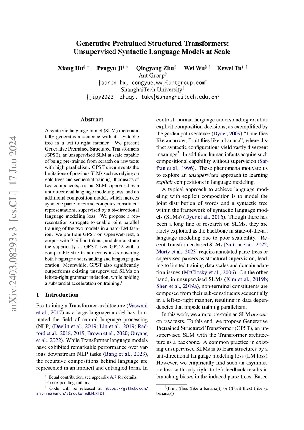 Generative Pretrained Structured Transformers: Unsupervised Syntactic
