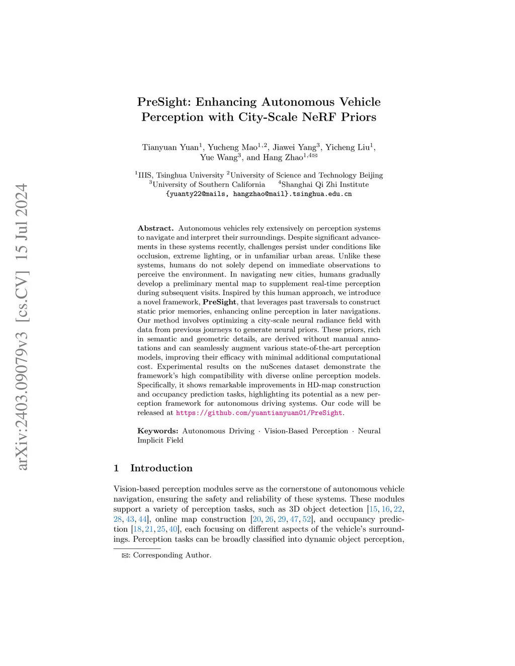 PreSight: Enhancing Autonomous Vehicle Perception with City-Scale NeRF