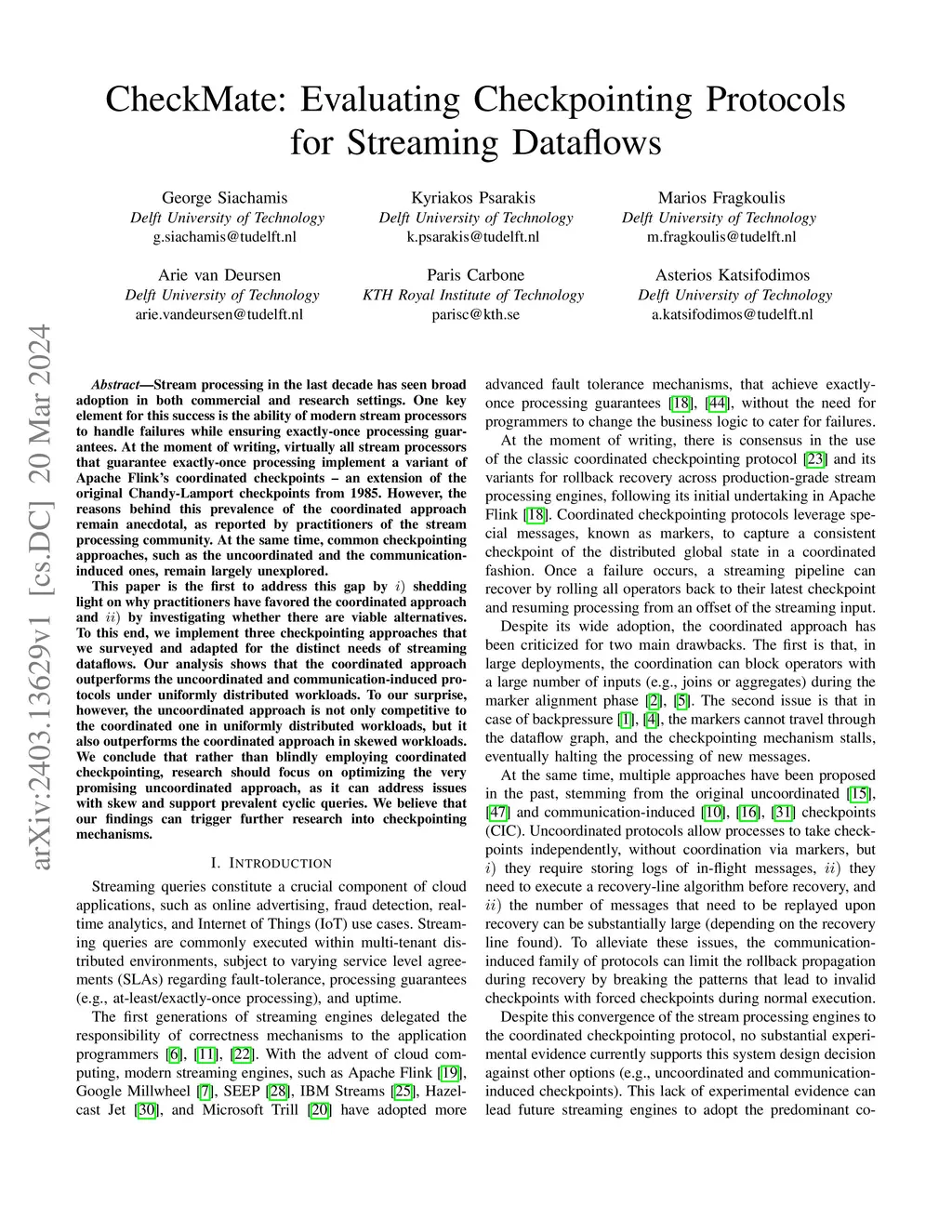 CheckMate: Evaluating Checkpointing Protocols for Streaming Dataflows