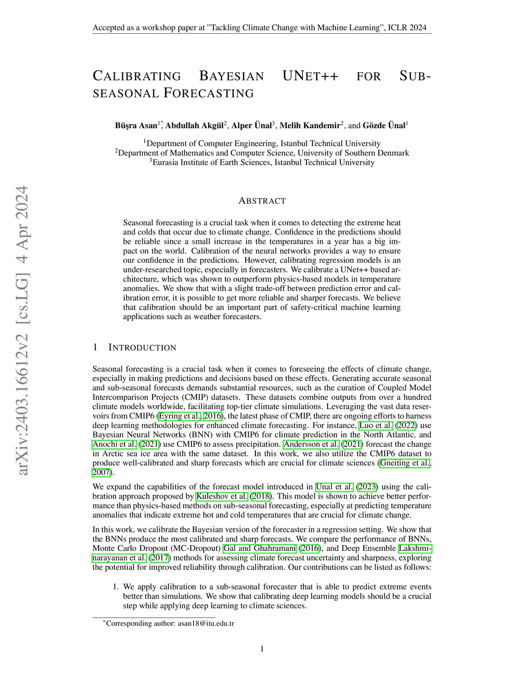Calibrating Bayesian UNet++ for Sub-Seasonal Forecasting