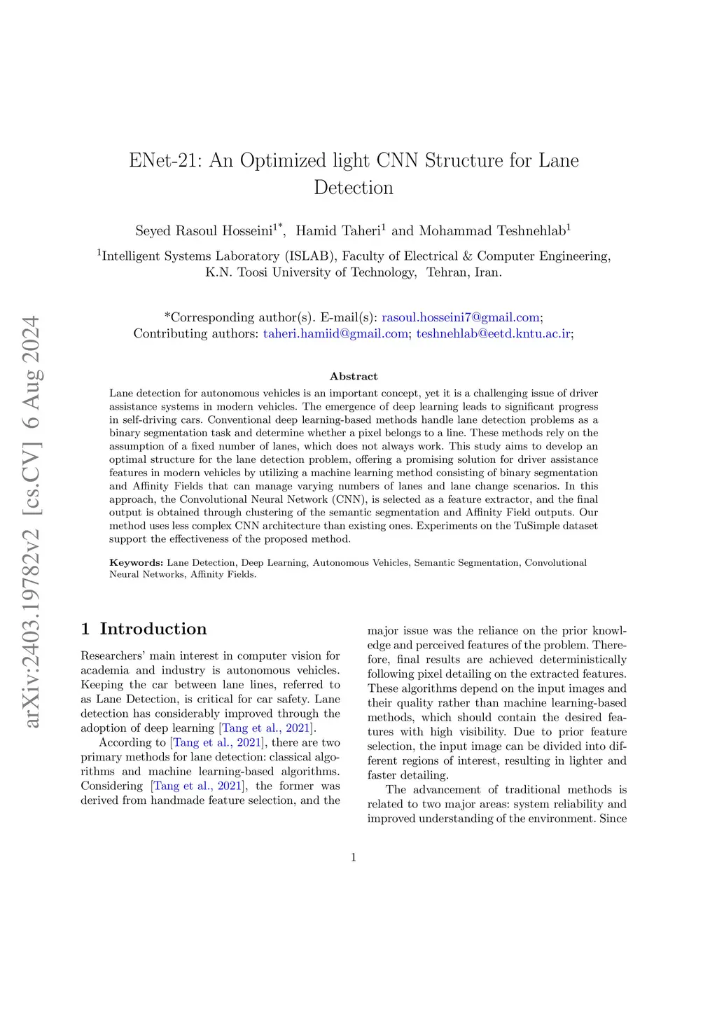 ENet-21: An Optimized light CNN Structure for Lane Detection