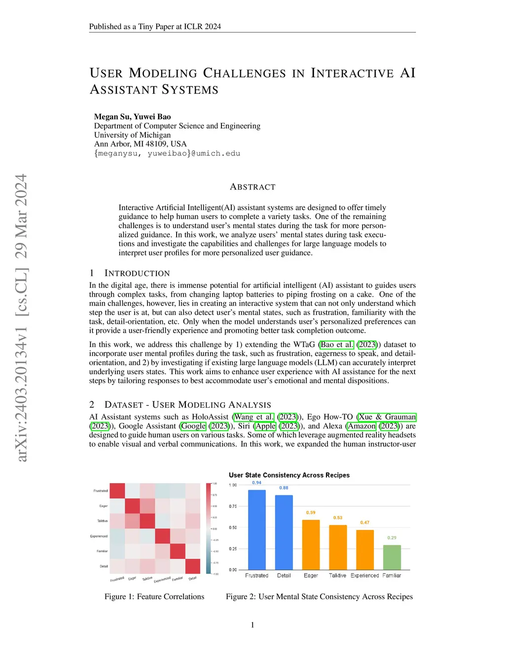 Interactive Artificial Intelligent(AI) assistant systems are designed to offer timely guidance to help human users to complete a variety tasks. One of the remaining challenges is to understand user's mental states during the task for more personalized guidance. In this work, we analyze users' mental states during task executions and investigate the capabilities and challenges for large language models to interpret user profiles for more personalized user guidance.