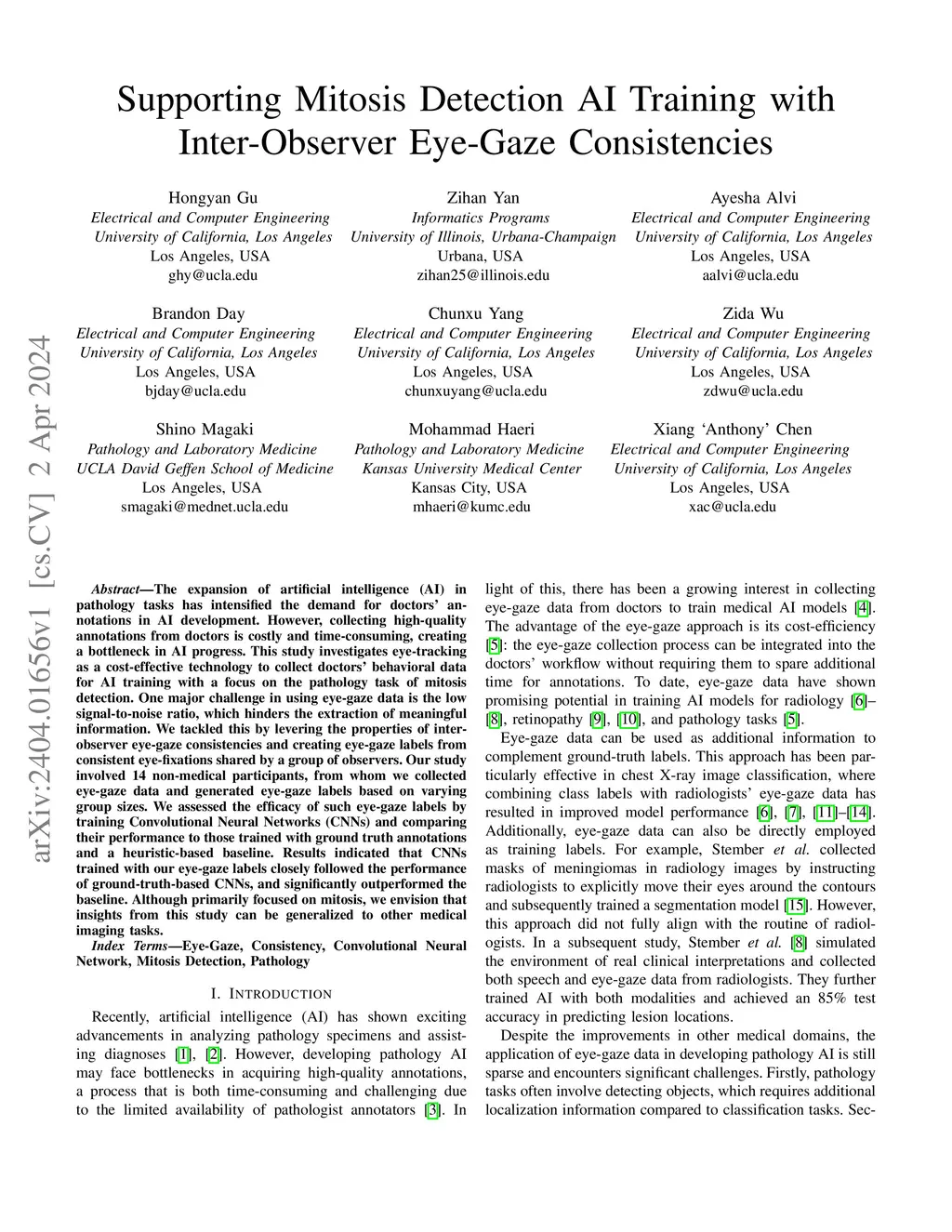 Supporting Mitosis Detection AI Training with Inter-Observer Eye-Gaze