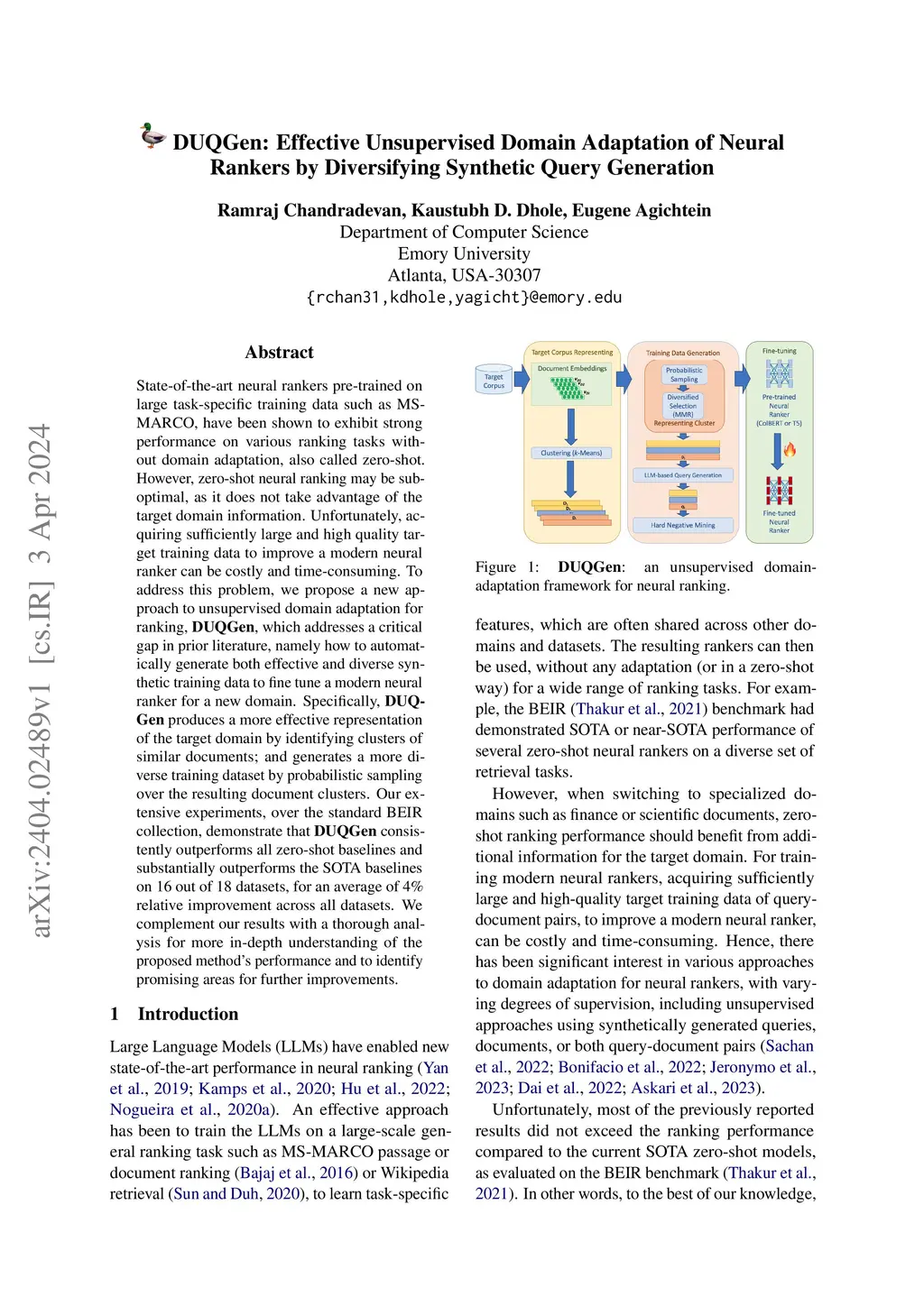 DUQGen: Effective Unsupervised Domain Adaptation of Neural Rankers by