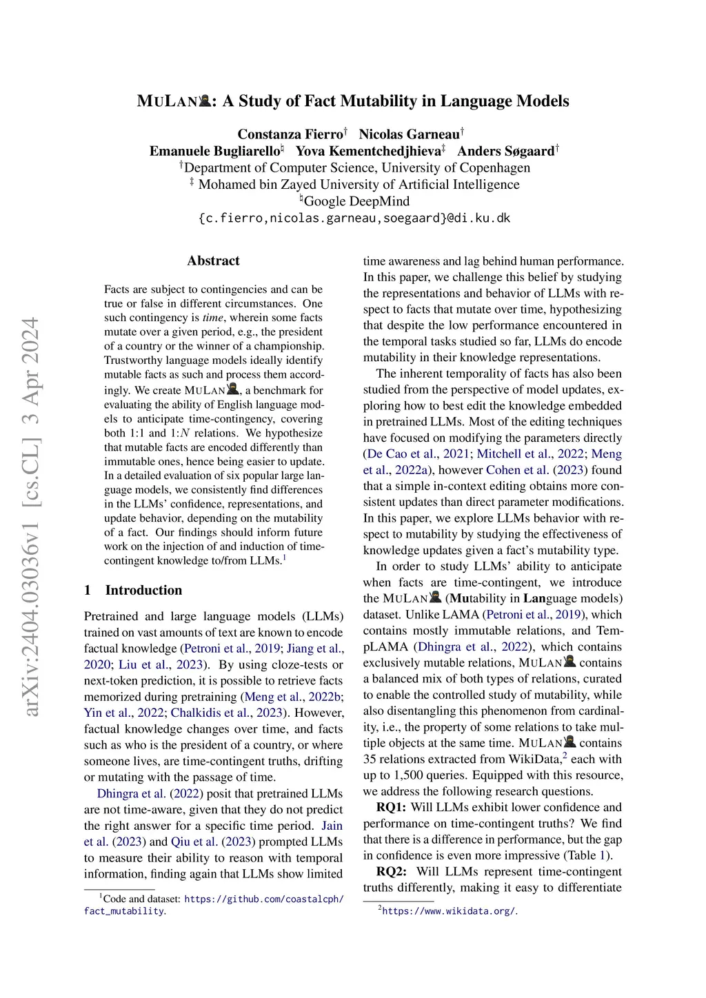 MuLan: A Study of Fact Mutability in Language Models