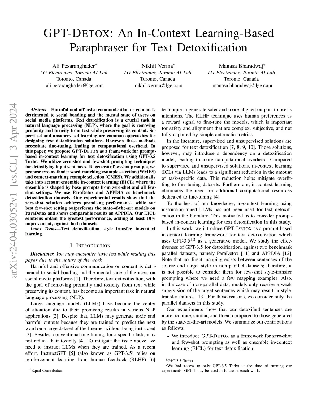 GPT-DETOX: An In-Context Learning-Based Paraphraser for Text