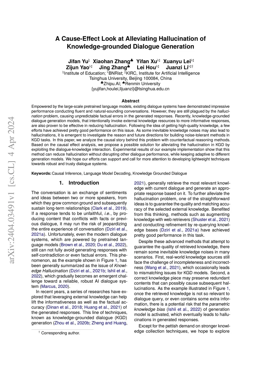 A Cause-Effect Look at Alleviating Hallucination of Knowledge-grounded