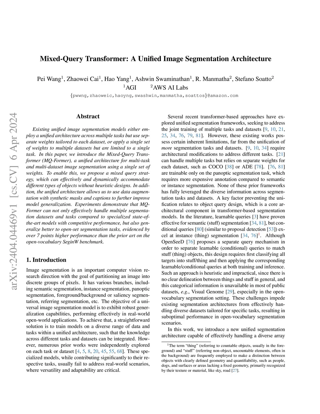 Mixed-Query Transformer: A Unified Image Segmentation Architecture