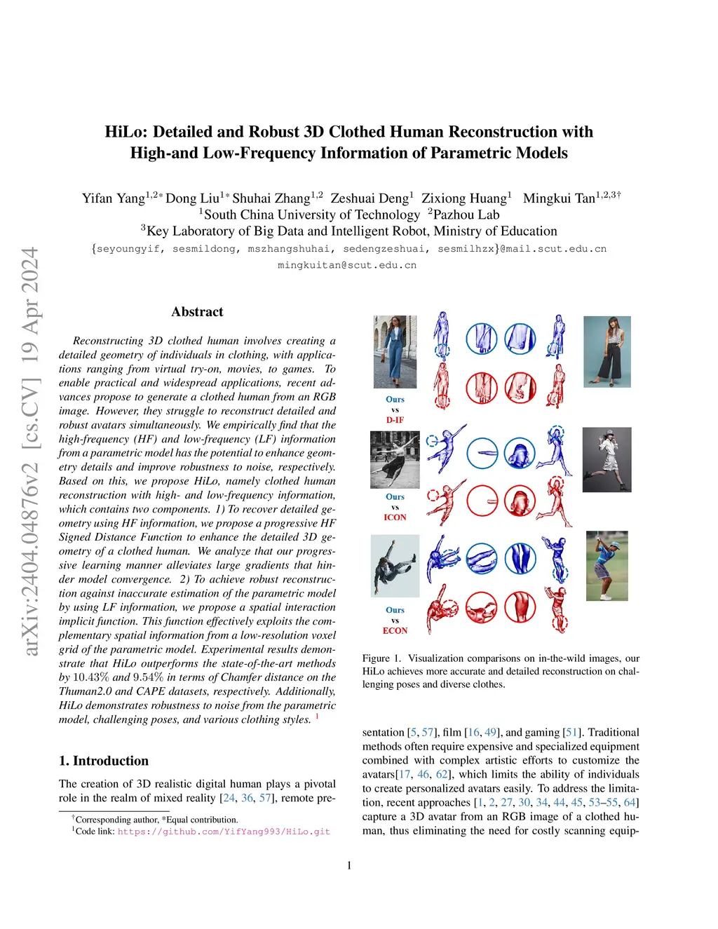HiLo: Detailed and Robust 3D Clothed Human Reconstruction with High-and