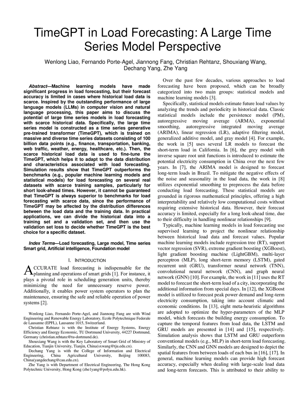Machine learning models have made significant progress in load forecasting, but their forecast accuracy is limited in cases where historical load data is scarce. Inspired by the outstanding performance of large language models (LLMs) in computer vision and natural language processing, this paper aims to discuss the potential of large time series models in load forecasting with scarce historical data. Specifically, the large time series model is constructed as a time series generative pre-trained transformer (TimeGPT), which is trained on massive and diverse time series datasets consisting of 100 billion data points (e.g., finance, transportation, banking, web traffic, weather, energy, healthcare, etc.). Then, the scarce historical load data is used to fine-tune the TimeGPT, which helps it to adapt to the data distribution and characteristics associated with load forecasting. Simulation results show that TimeGPT outperforms the benchmarks (e.g., popular machine learning models and statistical models) for load forecasting on several real datasets with scarce training samples, particularly for short look-ahead times. However, it cannot be guaranteed that TimeGPT is always superior to benchmarks for load forecasting with scarce data, since the performance of TimeGPT may be affected by the distribution differences between the load data and the training data. In practical applications, we can divide the historical data into a training set and a validation set, and then use the validation set loss to decide whether TimeGPT is the best choice for a specific dataset.