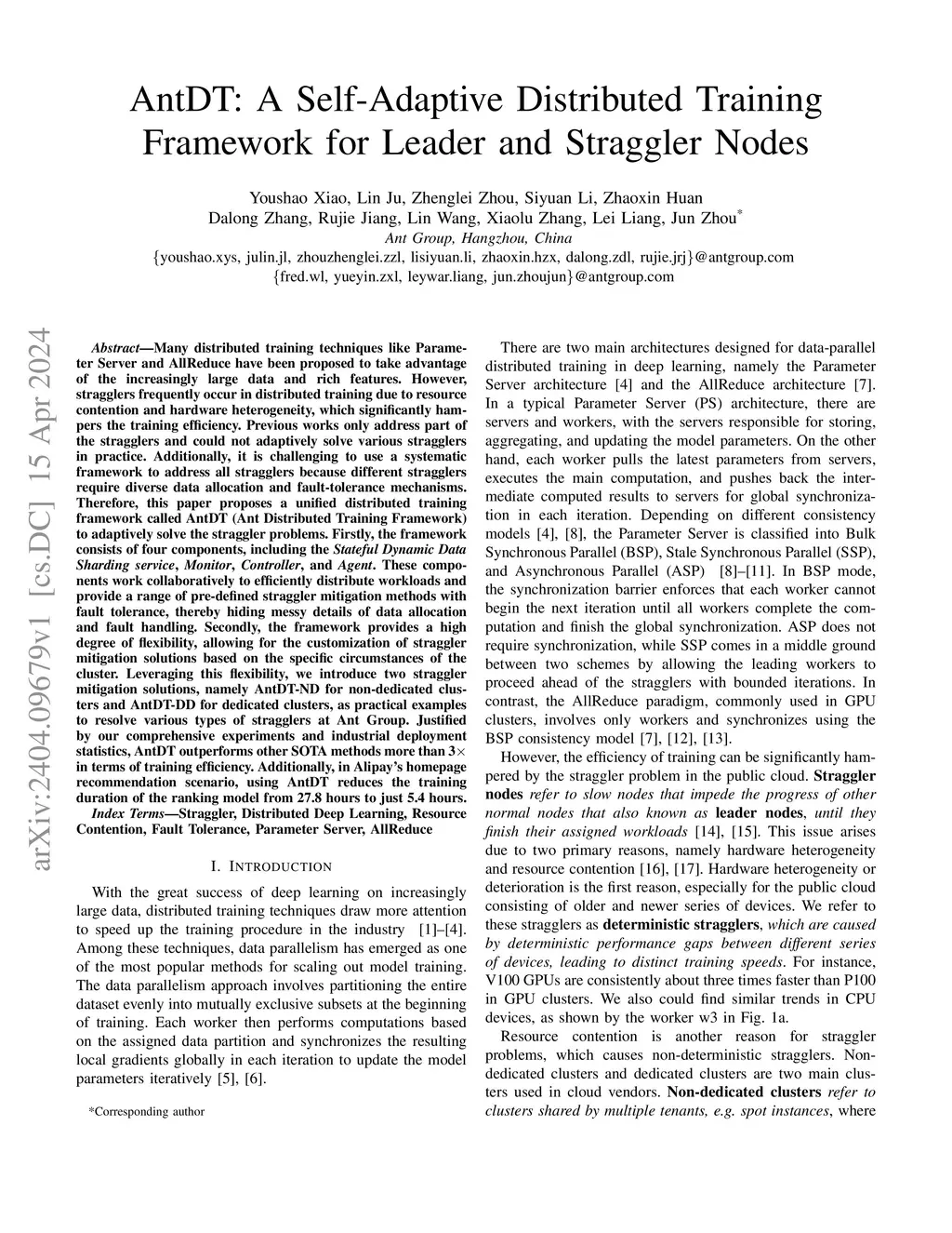 AntDT: A Self-Adaptive Distributed Training Framework for Leader and