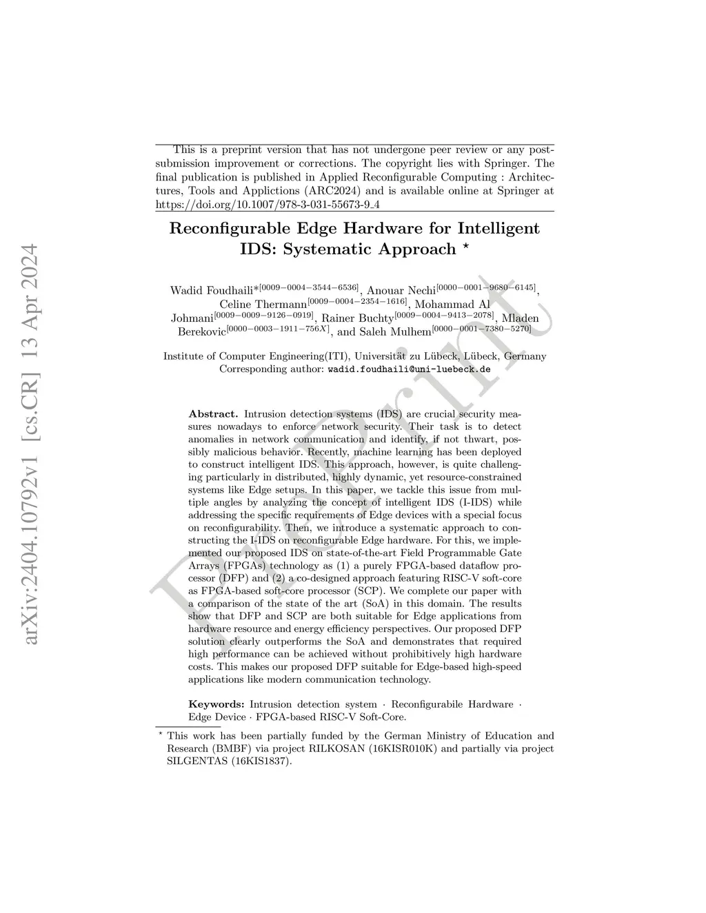Reconfigurable Edge Hardware for Intelligent IDS: Systematic Approach