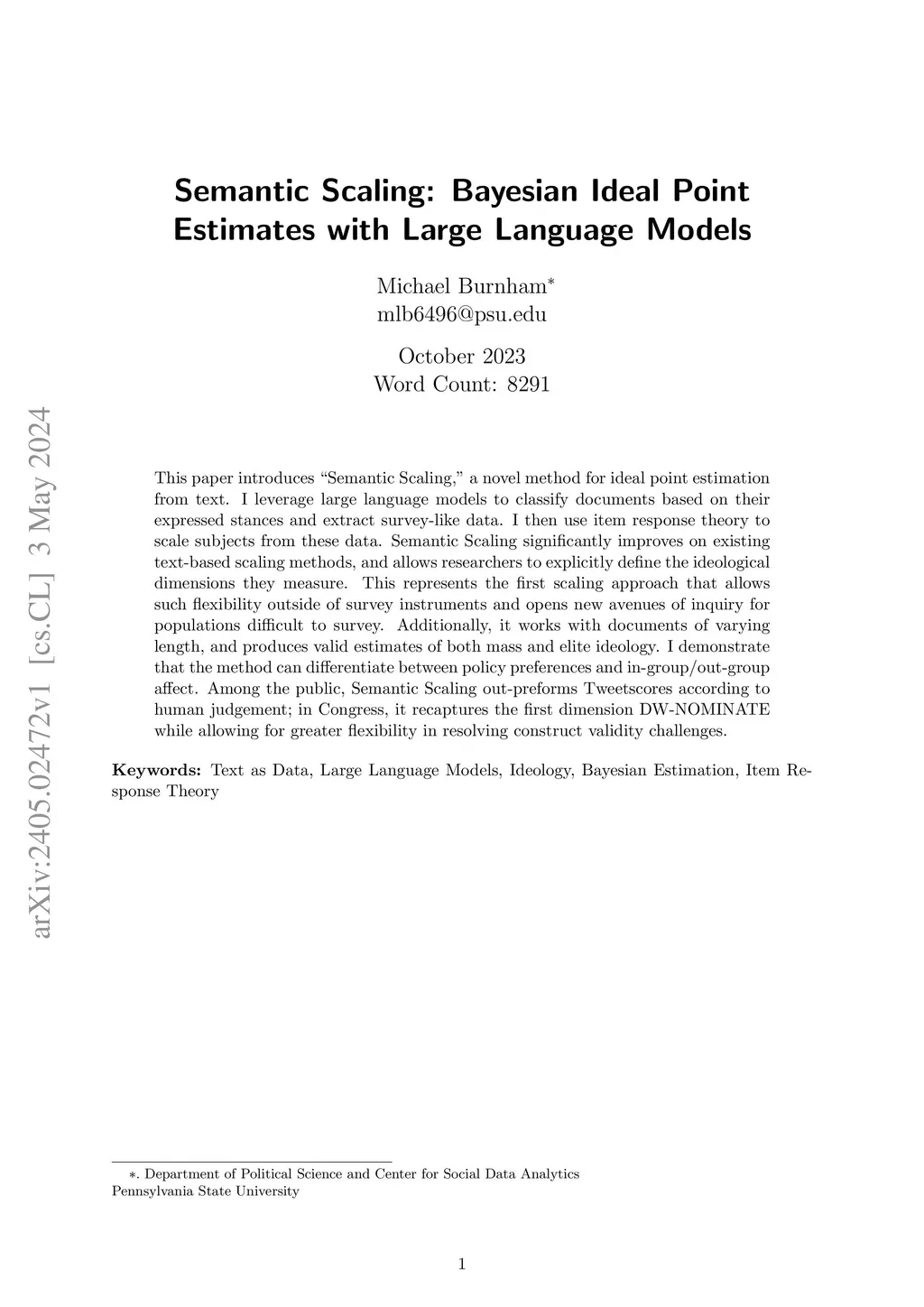 Semantic Scaling: Bayesian Ideal Point Estimates with Large Language