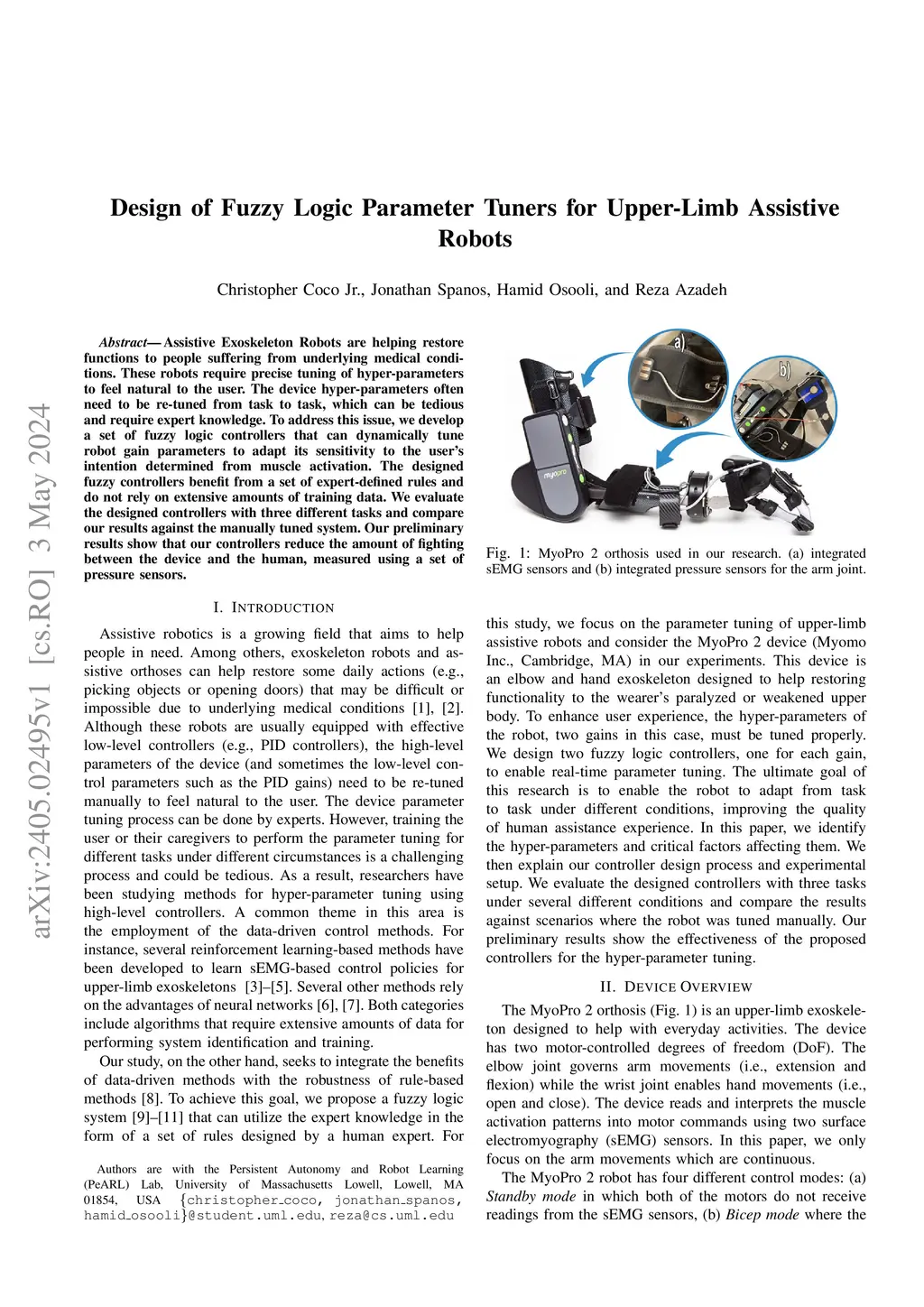 Design of Fuzzy Logic Parameter Tuners for Upper-Limb Assistive Robots