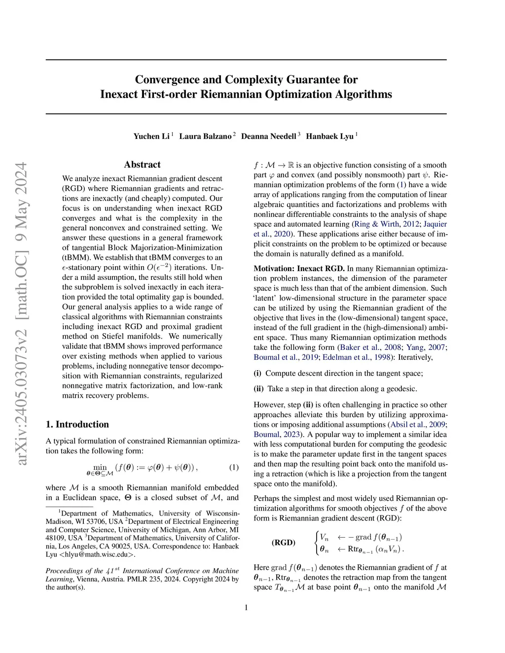 We analyze inexact Riemannian gradient descent (RGD) where Riemannian gradients and retractions are inexactly (and cheaply) computed. Our focus is on understanding when inexact RGD converges and what is the complexity in the general nonconvex and constrained setting. We answer these questions in a general framework of tangential Block Majorization-Minimization (tBMM). We establish that tBMM converges to an -stationary point within iterations. Under a mild assumption, the results still hold when the subproblem is solved inexactly in each iteration provided the total optimality gap is bounded. Our general analysis applies to a wide range of classical algorithms with Riemannian constraints including inexact RGD and proximal gradient method on Stiefel manifolds. We numerically validate that tBMM shows improved performance over existing methods when applied to various problems, including nonnegative tensor decomposition with Riemannian constraints, regularized nonnegative matrix factorization, and low-rank matrix recovery problems.