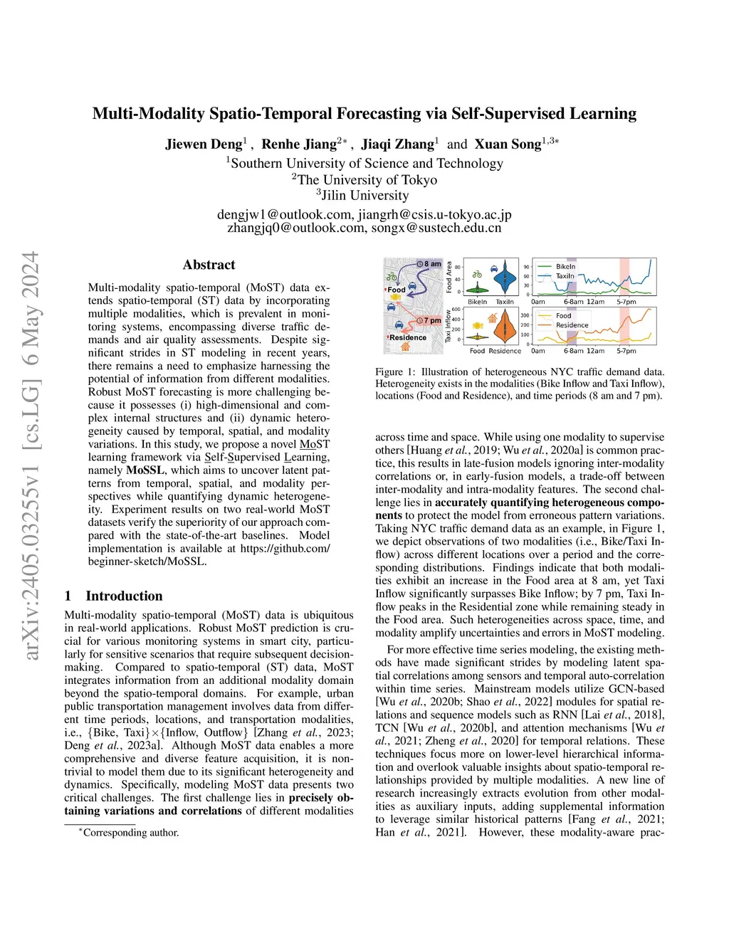 Multi-Modality Spatio-Temporal Forecasting via Self-Supervised Learning