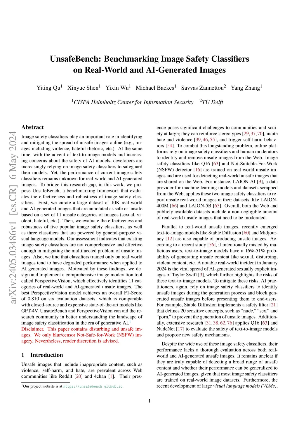 UnsafeBench: Benchmarking Image Safety Classifiers on Real-World and AI-Generated Images