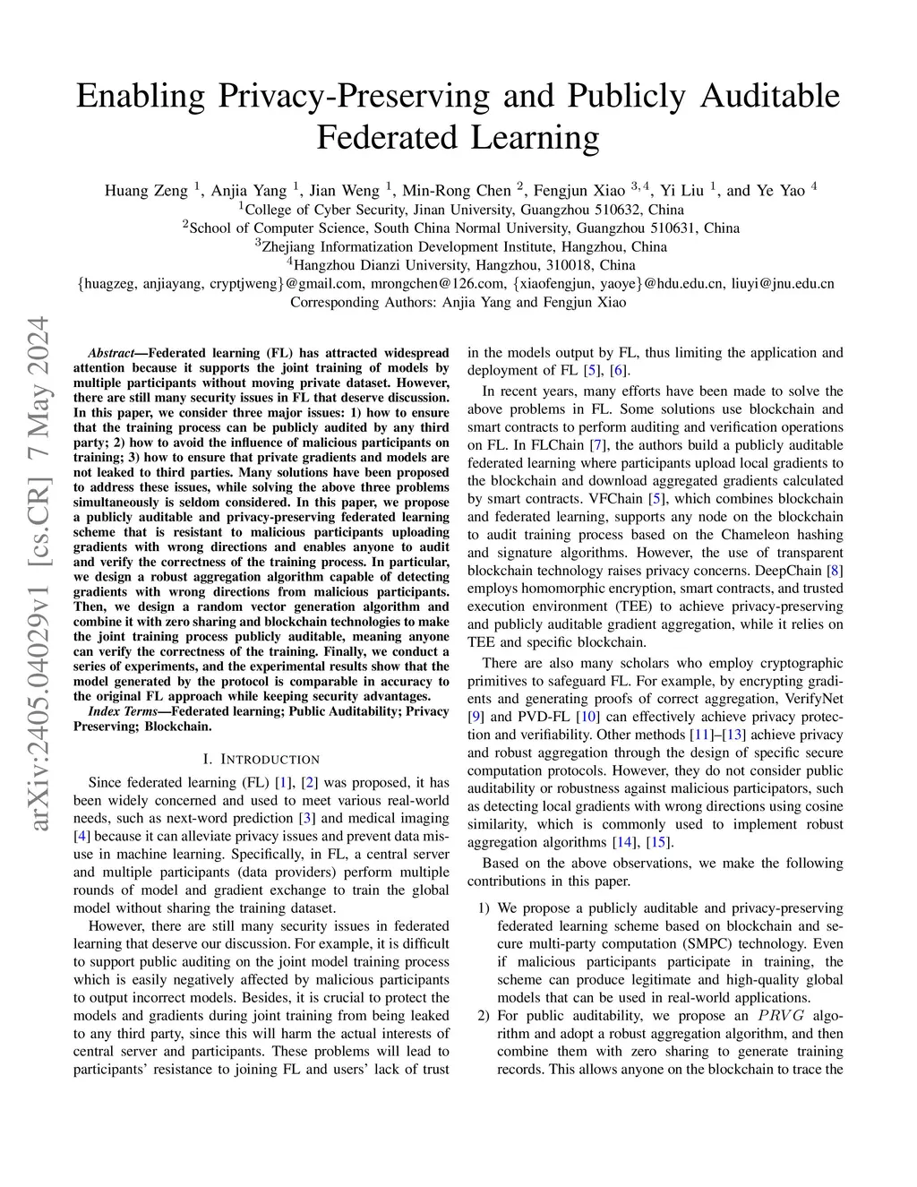 Enabling Privacy-Preserving and Publicly Auditable Federated Learning