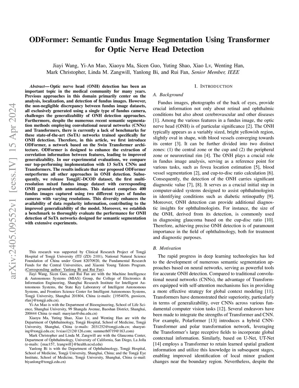 ODFormer: Semantic Fundus Image Segmentation Using Transformer for Optic