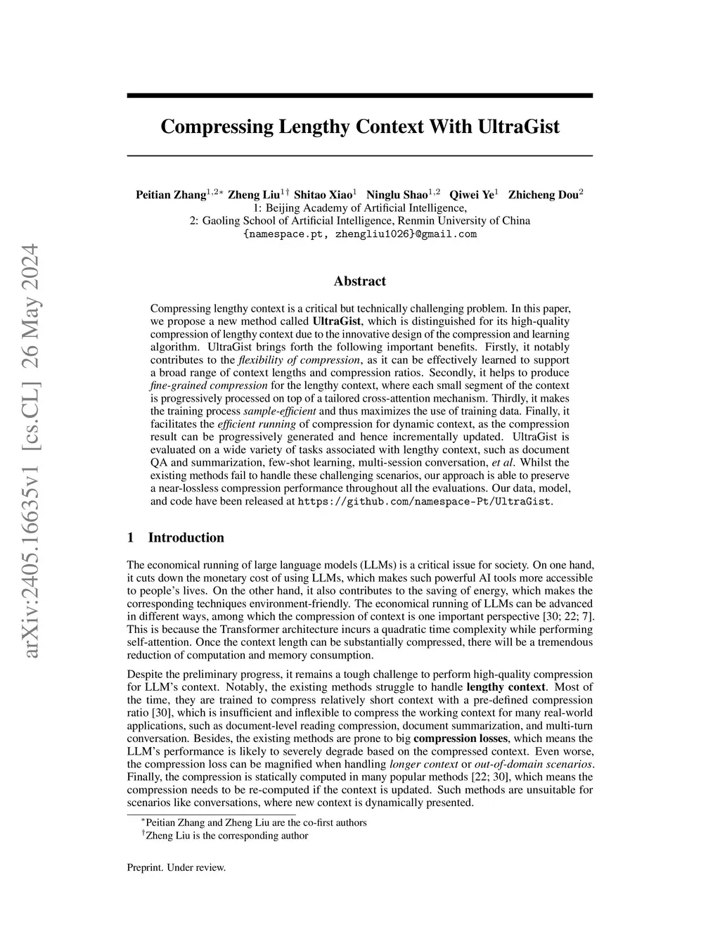 Compressing lengthy context is a critical but technically challenging problem. In this paper, we propose a new method called UltraGist, which is distinguished for its high-quality compression of lengthy context due to the innovative design of the compression and learning algorithm. UltraGist brings forth the following important benefits. Firstly, it notably contributes to the flexibility of compression, as it can be effectively learned to support a broad range of context lengths and compression ratios. Secondly, it helps to produce fine-grained compression for the lengthy context, where each small segment of the context is progressively processed on top of a tailored cross-attention mechanism. Thirdly, it makes the training process sample-efficient and thus maximizes the use of training data. Finally, it facilitates the efficient running of compression for dynamic context, as the compression result can be progressively generated and hence incrementally updated. UltraGist is evaluated on a wide variety of tasks associated with lengthy context, such as document QA and summarization, few-shot learning, multi-session conversation, et al. Whilst the existing methods fail to handle these challenging scenarios, our approach is able to preserve a near-lossless compression performance throughout all the evaluations. Our data, model, and code have been released at \url{https://github.com/namespace-Pt/UltraGist}.