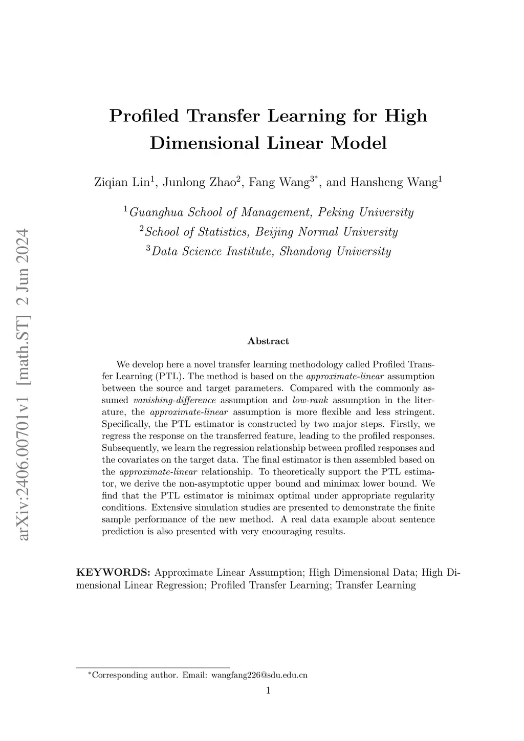 We develop here a novel transfer learning methodology called Profiled Transfer Learning (PTL). The method is based on the \textit{approximate-linear} assumption between the source and target parameters. Compared with the commonly assumed \textit{vanishing-difference} assumption and \textit{low-rank} assumption in the literature, the \textit{approximate-linear} assumption is more flexible and less stringent. Specifically, the PTL estimator is constructed by two major steps. Firstly, we regress the response on the transferred feature, leading to the profiled responses. Subsequently, we learn the regression relationship between profiled responses and the covariates on the target data. The final estimator is then assembled based on the \textit{approximate-linear} relationship. To theoretically support the PTL estimator, we derive the non-asymptotic upper bound and minimax lower bound. We find that the PTL estimator is minimax optimal under appropriate regularity conditions. Extensive simulation studies are presented to demonstrate the finite sample performance of the new method. A real data example about sentence prediction is also presented with very encouraging results.
