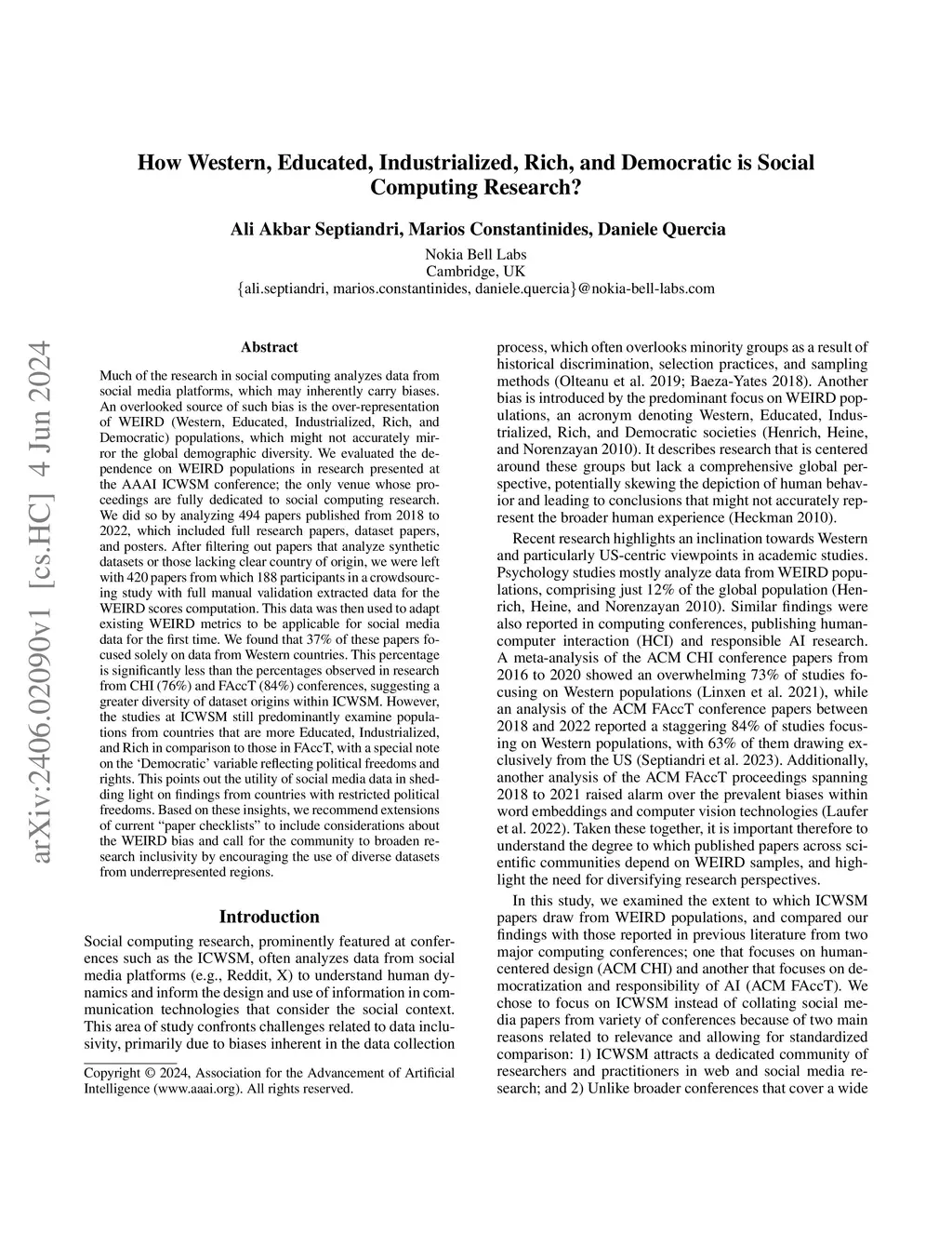 WEIRD ICWSM: How Western, Educated, Industrialized, Rich, and Democratic