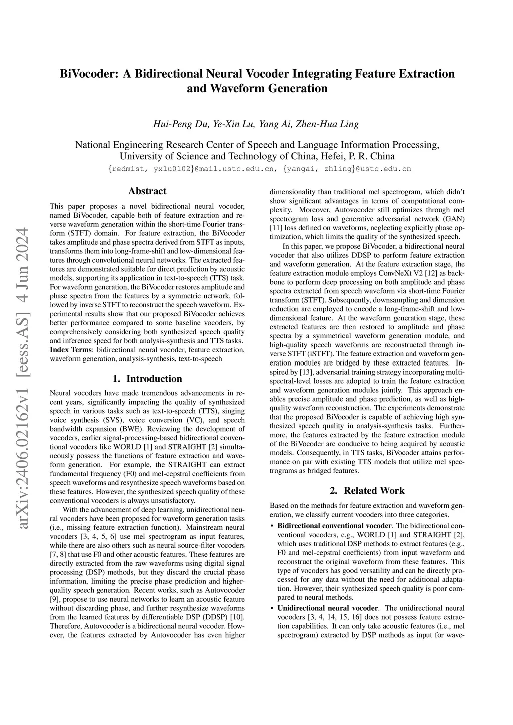 This paper proposes a novel bidirectional neural vocoder, named BiVocoder, capable both of feature extraction and reverse waveform generation within the short-time Fourier transform (STFT) domain. For feature extraction, the BiVocoder takes amplitude and phase spectra derived from STFT as inputs, transforms them into long-frame-shift and low-dimensional features through convolutional neural networks. The extracted features are demonstrated suitable for direct prediction by acoustic models, supporting its application in text-to-speech (TTS) task. For waveform generation, the BiVocoder restores amplitude and phase spectra from the features by a symmetric network, followed by inverse STFT to reconstruct the speech waveform. Experimental results show that our proposed BiVocoder achieves better performance compared to some baseline vocoders, by comprehensively considering both synthesized speech quality and inference speed for both analysis-synthesis and TTS tasks.