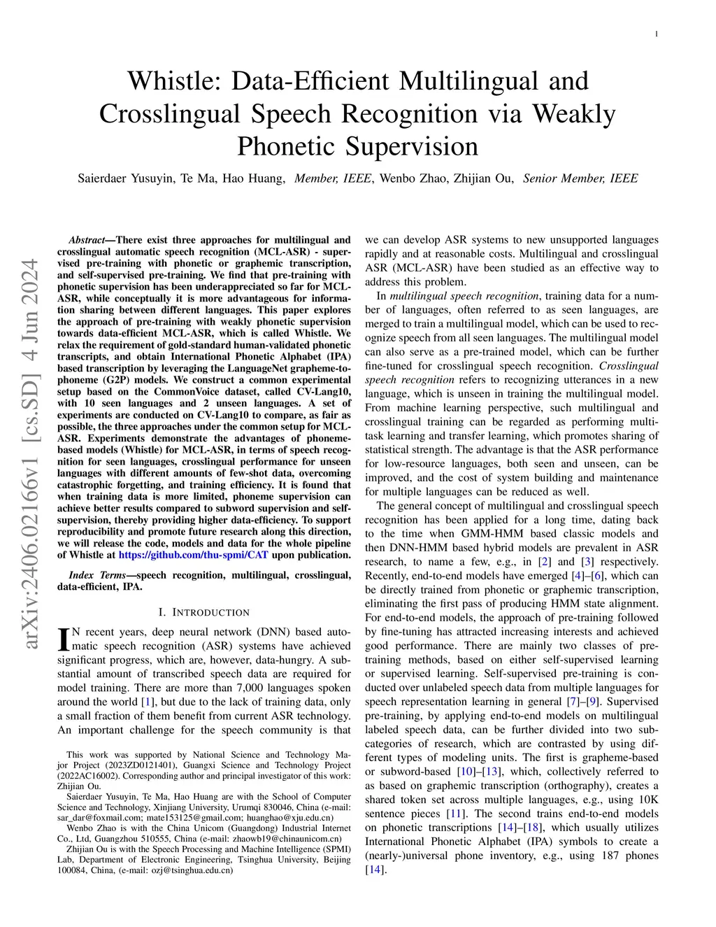 Whistle: Data-Efficient Multilingual and Crosslingual Speech Recognition via Weakly Phonetic Supervision