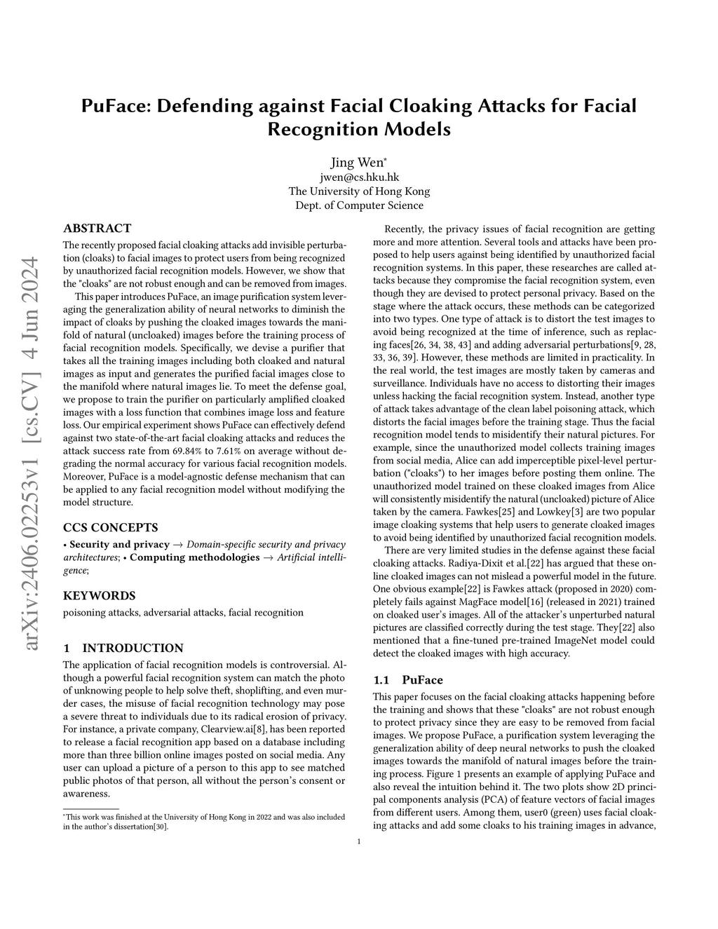 PuFace: Defending against Facial Cloaking Attacks for Facial Recognition