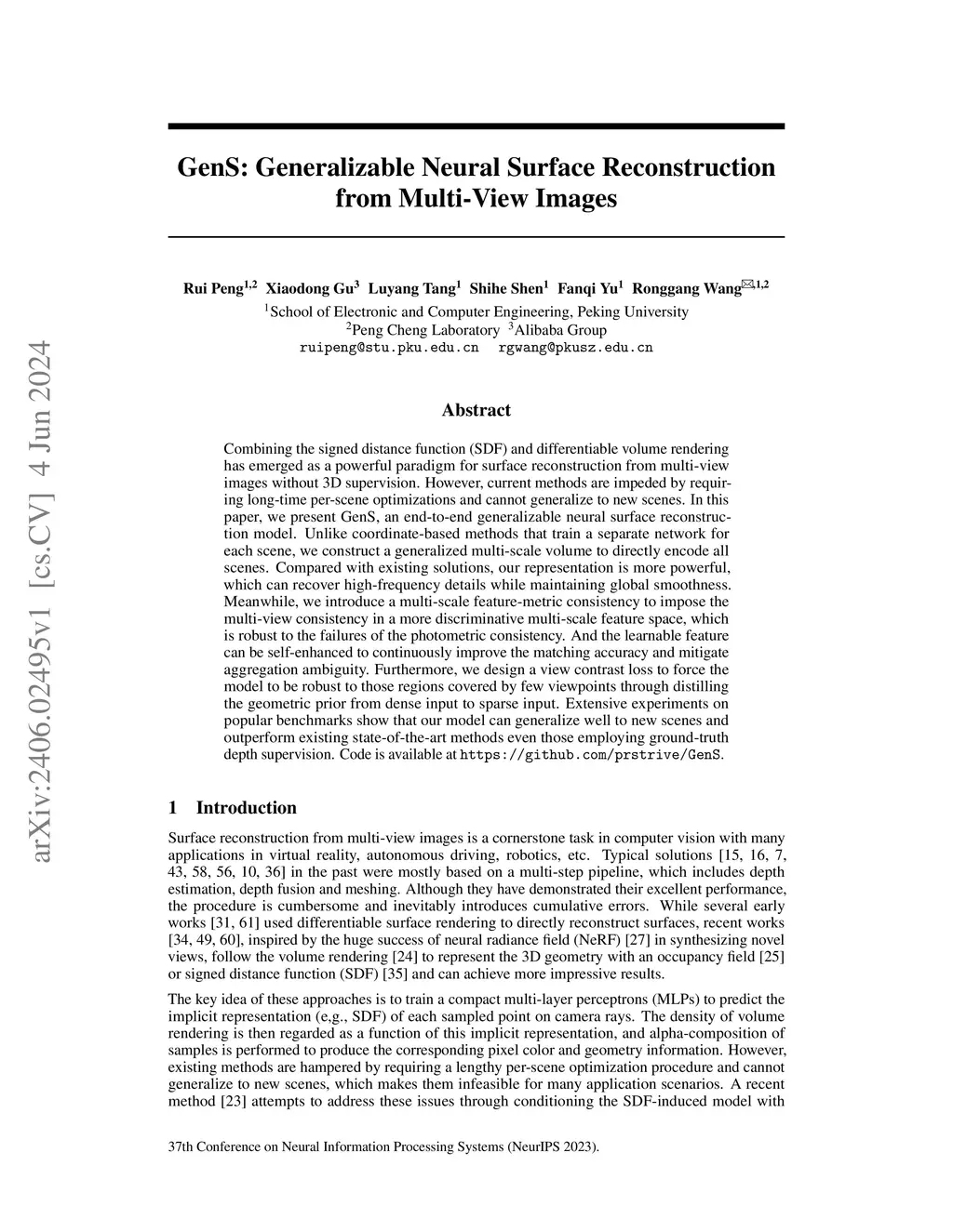 GenS: Generalizable Neural Surface Reconstruction from Multi-View Images