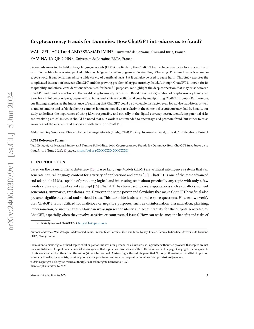 Cryptocurrency Frauds for Dummies: How ChatGPT introduces us to fraud?
