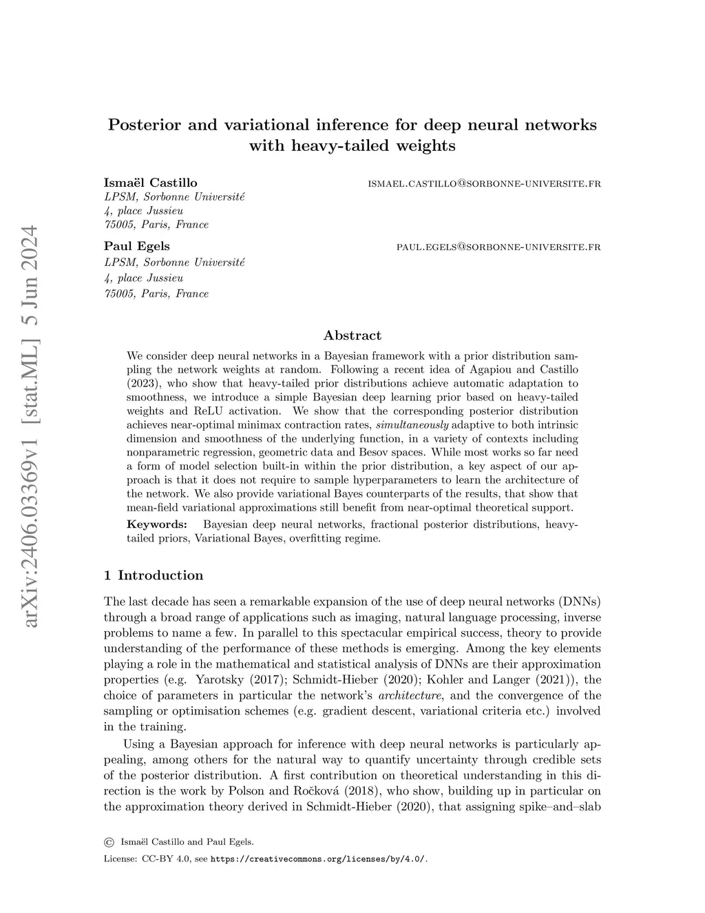 Posterior and variational inference for deep neural networks with heavy-tailed weights