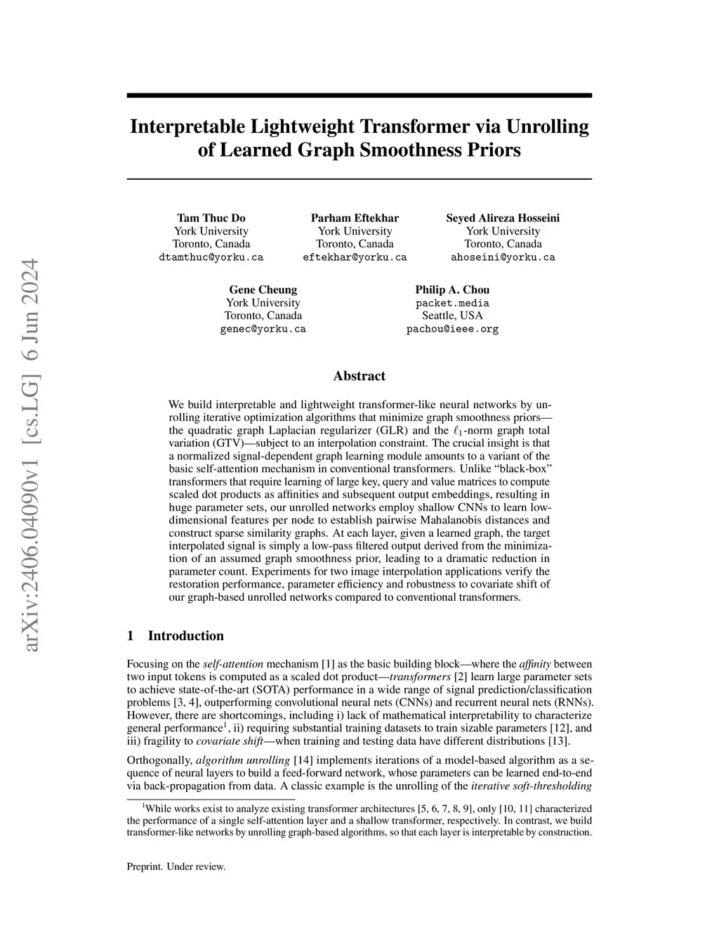 Interpretable Lightweight Transformer via Unrolling of Learned Graph