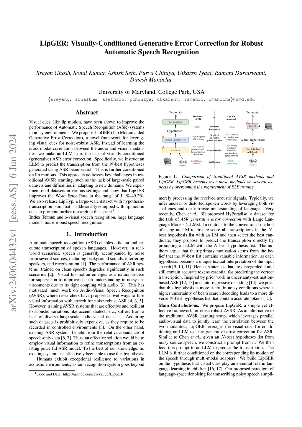 LipGER: Visually-Conditioned Generative Error Correction for Robust