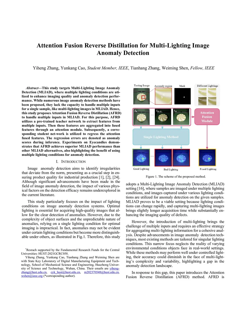 Attention Fusion Reverse Distillation for Multi-Lighting Image Anomaly