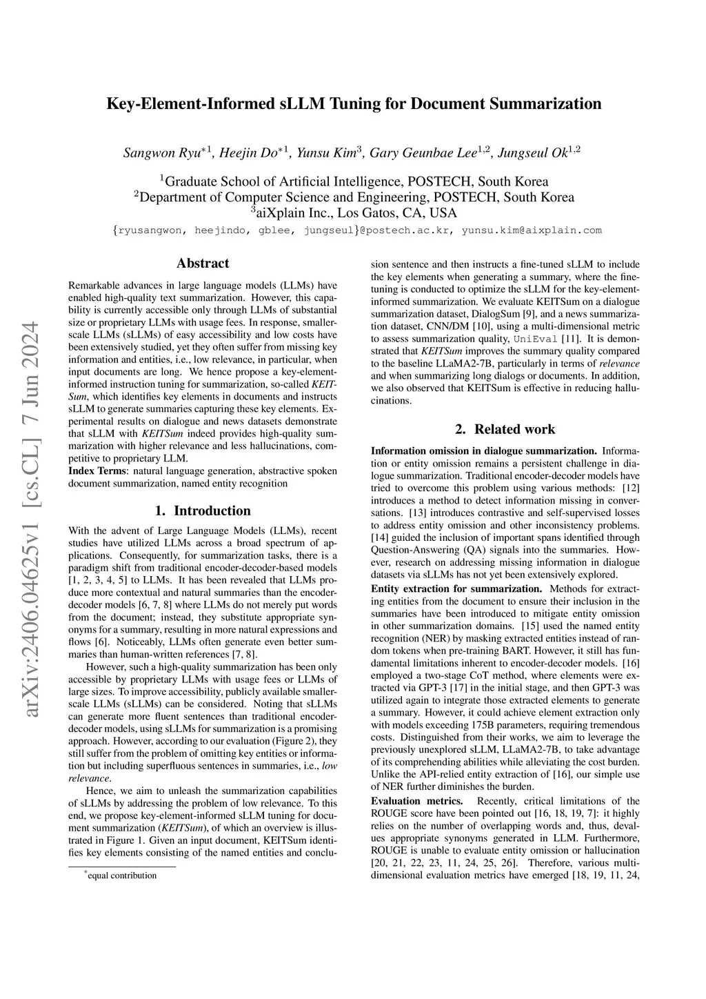 Key-Element-Informed sLLM Tuning for Document Summarization