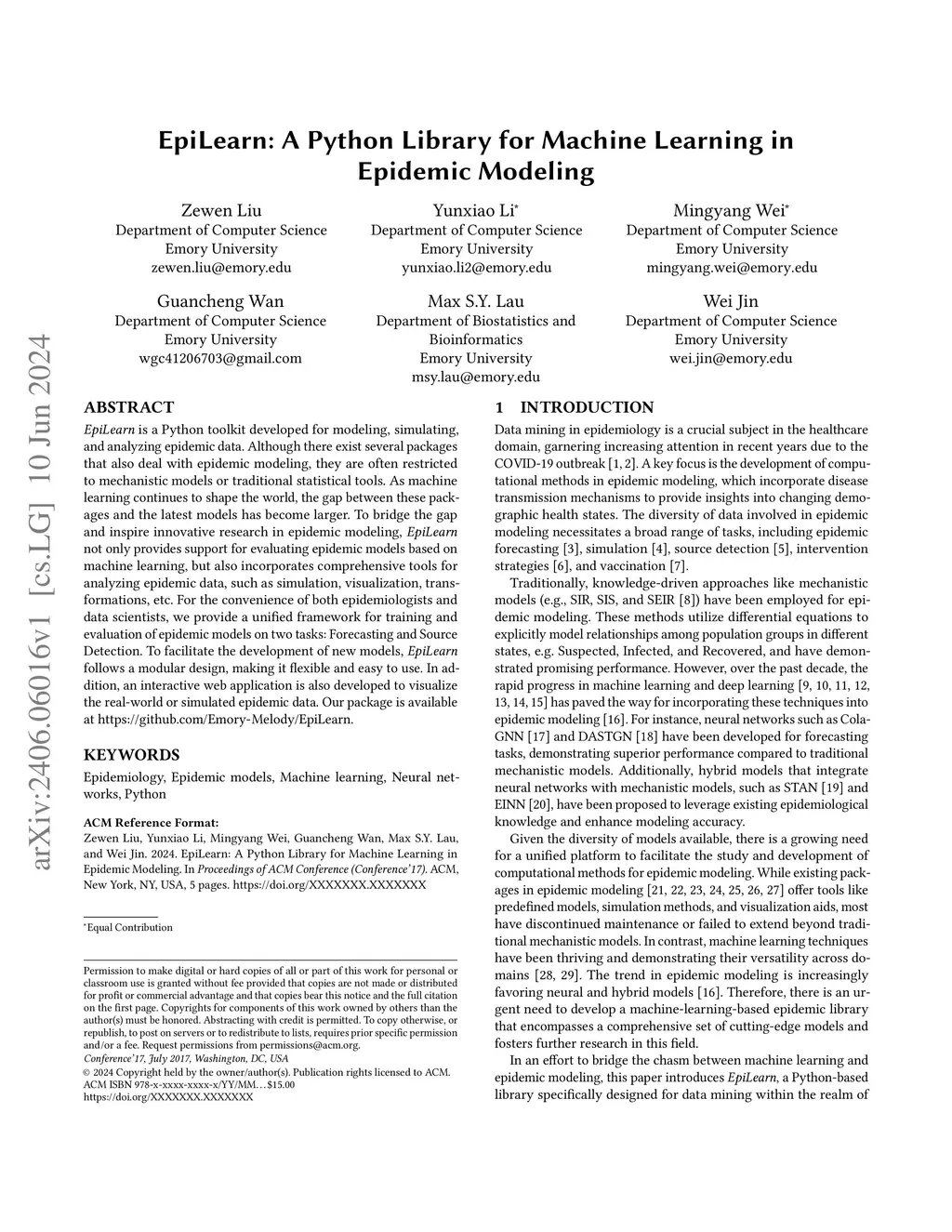 EpiLearn: A Python Library for Machine Learning in Epidemic Modeling