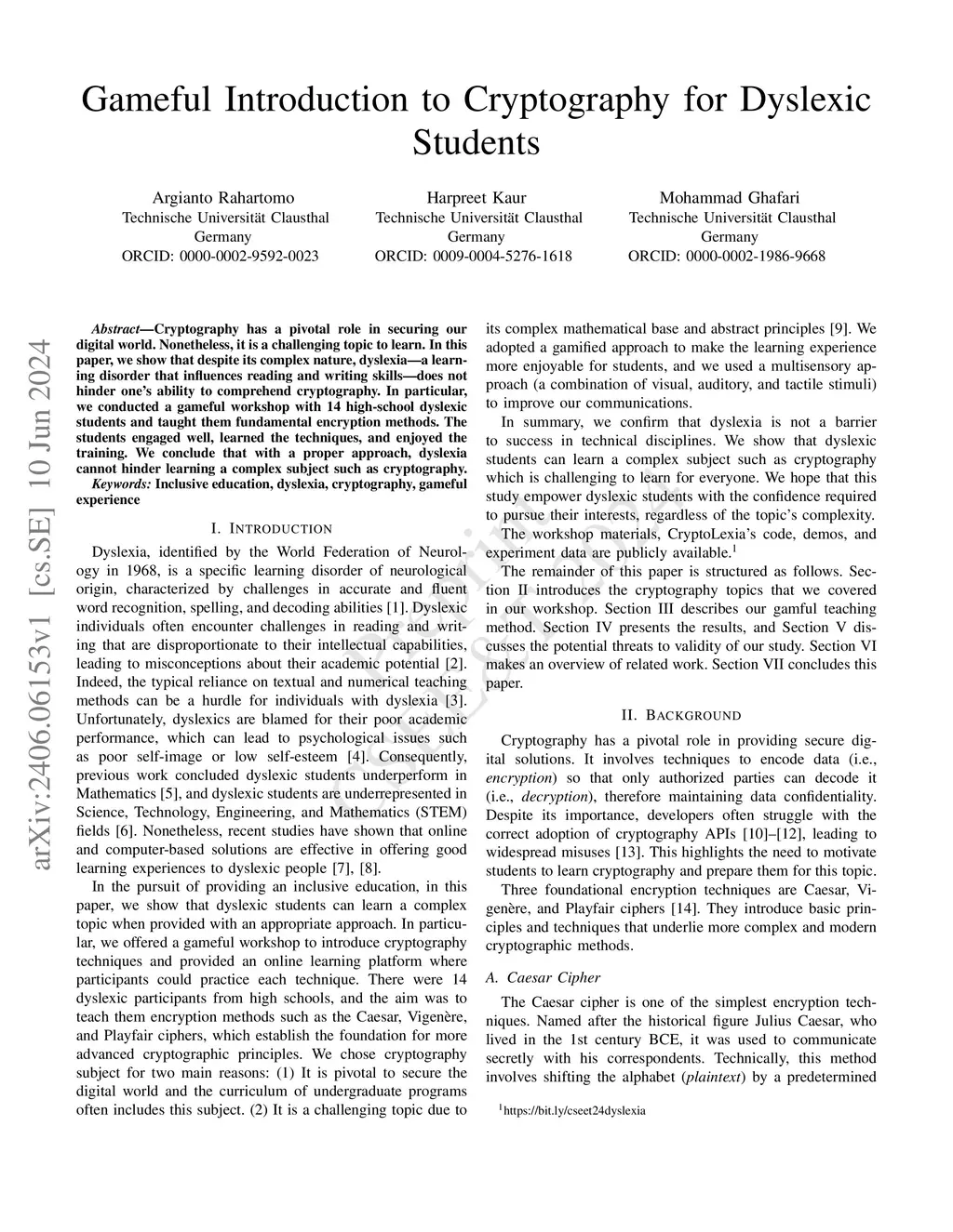 Cryptography has a pivotal role in securing our digital world. Nonetheless, it is a challenging topic to learn. In this paper, we show that despite its complex nature, dyslexiaa learning disorder that influences reading and writing skillsdoes not hinder one's ability to comprehend cryptography. In particular, we conducted a gameful workshop with 14 high-school dyslexic students and taught them fundamental encryption methods. The students engaged well, learned the techniques, and enjoyed the training. We conclude that with a proper approach, dyslexia cannot hinder learning a complex subject such as cryptography.