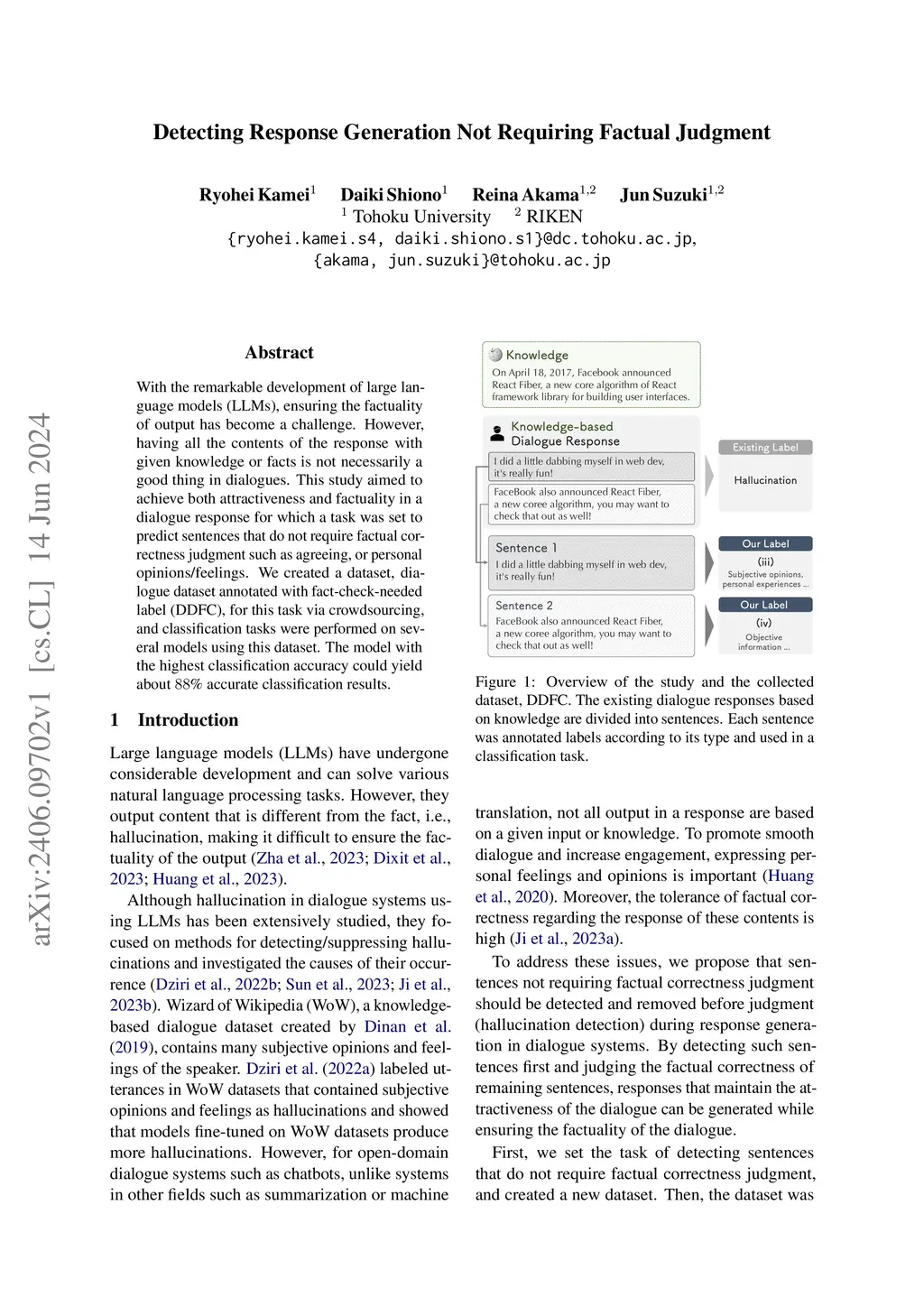 Detecting Response Generation Not Requiring Factual Judgment