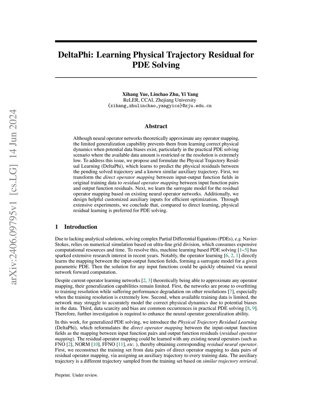 The limited availability of high-quality training data poses a major obstacle in data-driven PDE solving, where expensive data collection and resolution constraints severely impact the ability of neural operator networks to learn and generalize the underlying physical system. To address this challenge, we propose DeltaPhi, a novel learning framework that transforms the PDE solving task from learning direct input-output mappings to learning the residuals between similar physical states, a fundamentally different approach to neural operator learning. This reformulation provides implicit data augmentation by exploiting the inherent stability of physical systems where closer initial states lead to closer evolution trajectories. DeltaPhi is architecture-agnostic and can be seamlessly integrated with existing neural operators to enhance their performance. Extensive experiments demonstrate consistent and significant improvements across diverse physical systems including regular and irregular domains, different neural architectures, multiple training data amount, and cross-resolution scenarios, confirming its effectiveness as a general enhancement for neural operators in data-limited PDE solving.