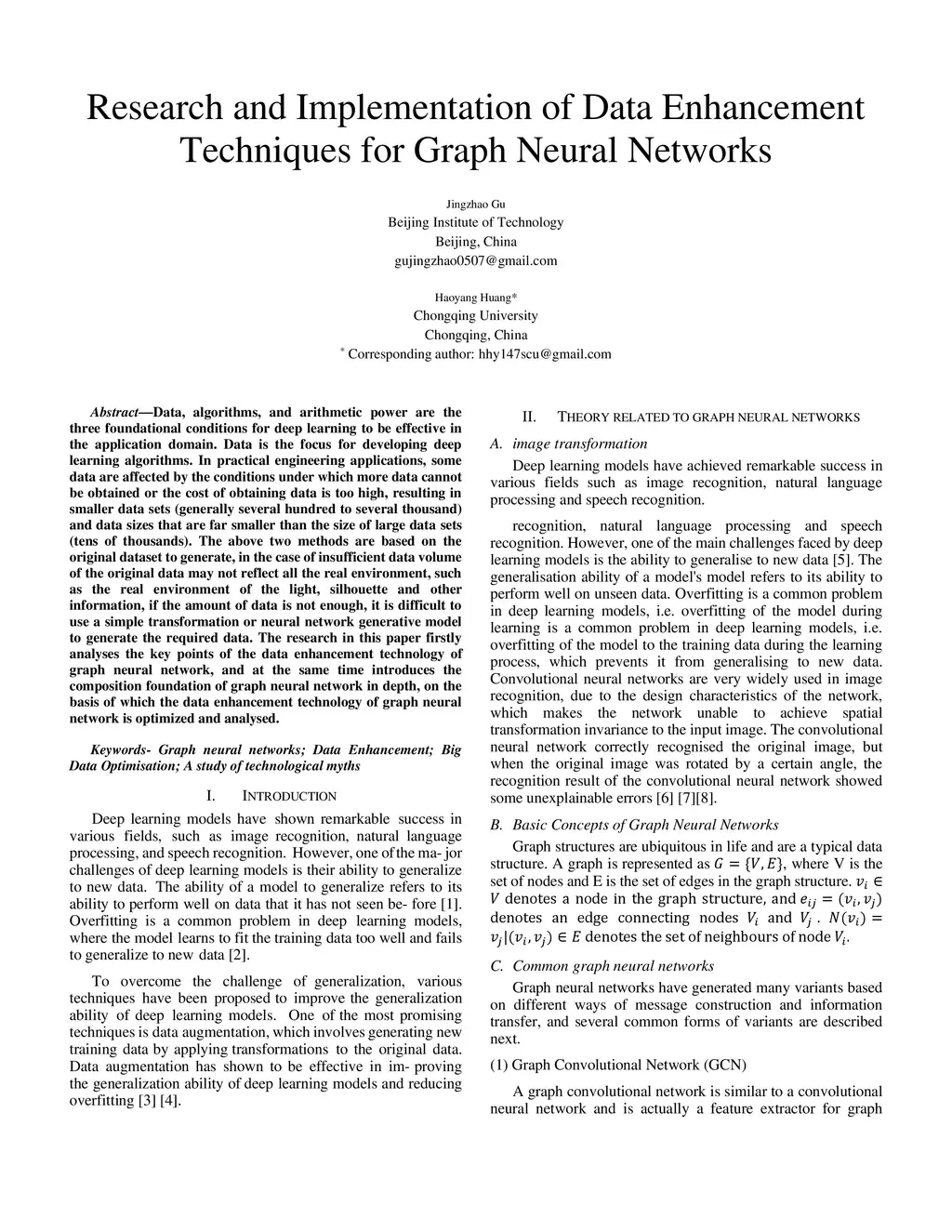 Data, algorithms, and arithmetic power are the three foundational conditions for deep learning to be effective in the application domain. Data is the focus for developing deep learning algorithms. In practical engineering applications, some data are affected by the conditions under which more data cannot be obtained or the cost of obtaining data is too high, resulting in smaller data sets (generally several hundred to several thousand) and data sizes that are far smaller than the size of large data sets (tens of thousands). The above two methods are based on the original dataset to generate, in the case of insufficient data volume of the original data may not reflect all the real environment, such as the real environment of the light, silhouette and other information, if the amount of data is not enough, it is difficult to use a simple transformation or neural network generative model to generate the required data. The research in this paper firstly analyses the key points of the data enhancement technology of graph neural network, and at the same time introduces the composition foundation of graph neural network in depth, on the basis of which the data enhancement technology of graph neural network is optimized and analysed.