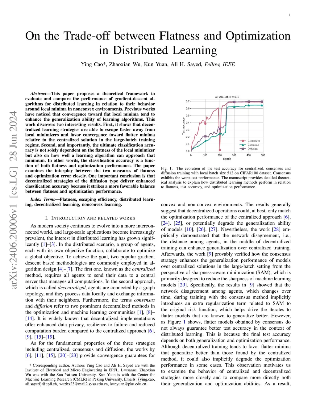 This paper proposes a theoretical framework to evaluate and compare the performance of stochastic gradient algorithms for distributed learning in relation to their behavior around local minima in nonconvex environments. Previous works have noticed that convergence toward flat local minima tend to enhance the generalization ability of learning algorithms. This work discovers three interesting results. First, it shows that decentralized learning strategies are able to escape faster away from local minima and favor convergence toward flatter minima relative to the centralized solution. Second, in decentralized methods, the consensus strategy has a worse excess-risk performance than diffusion, giving it a better chance of escaping from local minima and favoring flatter minima. Third, and importantly, the ultimate classification accuracy is not solely dependent on the flatness of the local minimum but also on how well a learning algorithm can approach that minimum. In other words, the classification accuracy is a function of both flatness and optimization performance. In this regard, since diffusion has a lower excess-risk than consensus, when both algorithms are trained starting from random initial points, diffusion enhances the classification accuracy. The paper examines the interplay between the two measures of flatness and optimization error closely. One important conclusion is that decentralized strategies deliver in general enhanced classification accuracy because they strike a more favorable balance between flatness and optimization performance compared to the centralized solution.