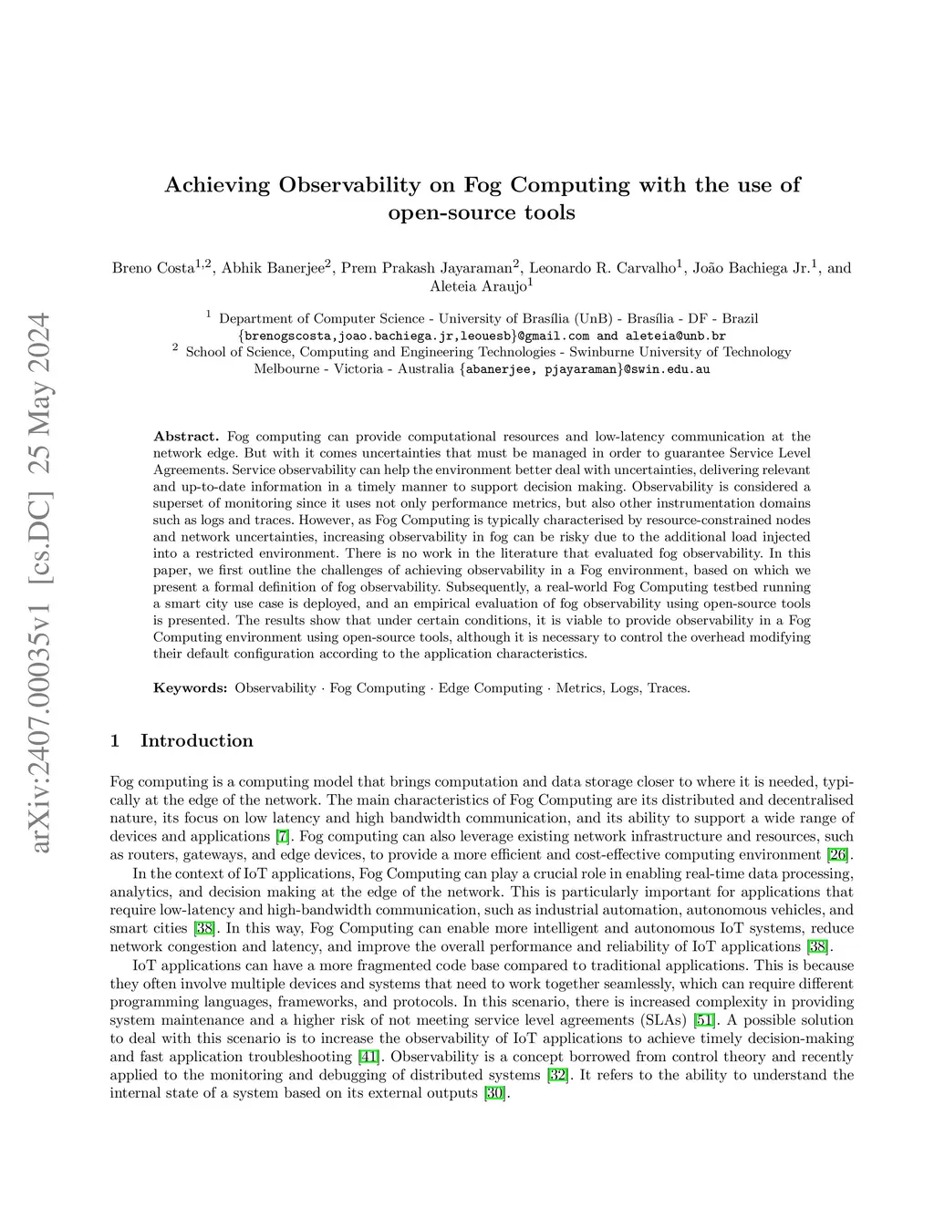 Achieving Observability on Fog Computing with the use of open-source
